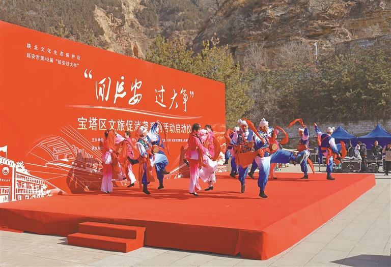 一月二十六日,延安接入全國高鐵網當日,“回延安 過大年”文旅促消費活動在寶塔山下啟動。 本報記者 王婕妤攝