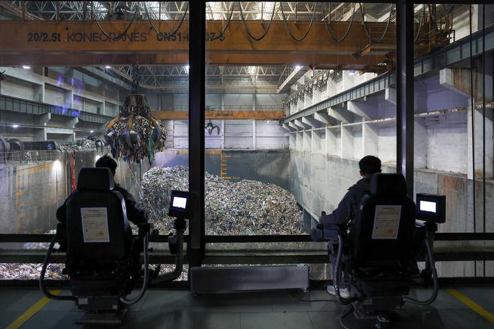 2026年1月14日,工作人員在杭州臨江環境能源有限公司內工作。新華社記者 江漢 攝
