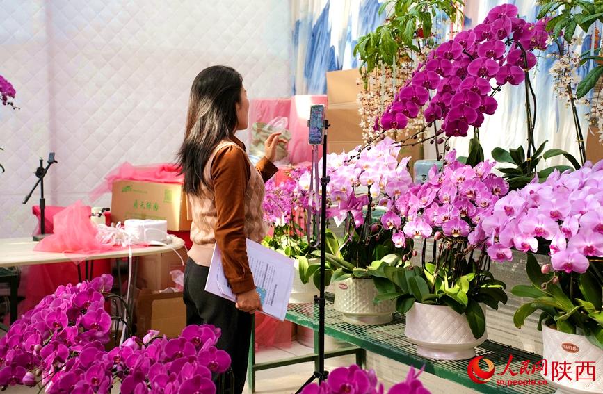 作為年宵花市場(chǎng)的“主力軍”,裕興農(nóng)業(yè)的蝴蝶蘭已進(jìn)入銷(xiāo)售旺季。溫室中,工人們來(lái)回穿梭,換盆、澆水、包裝,忙碌不停;展區(qū)內(nèi),銷(xiāo)售人員正通過(guò)社交媒體平臺(tái)進(jìn)行直播賣(mài)貨,處處都洋溢著豐收景象。