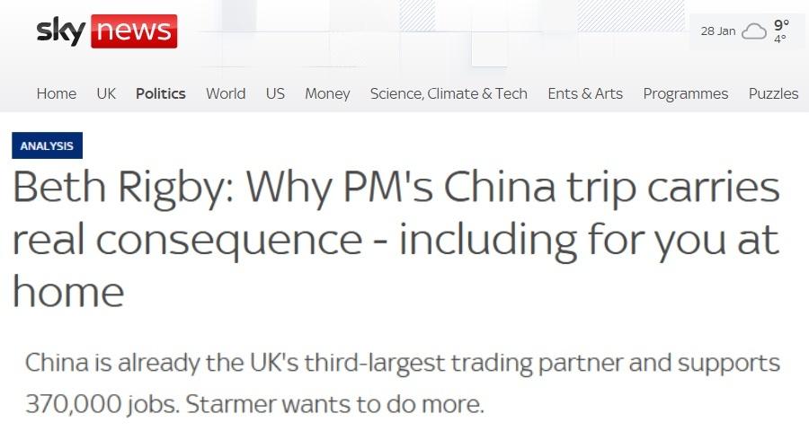 英國首相斯塔默1月28日至31日對中國進行正式訪問。多家外媒持續關注。