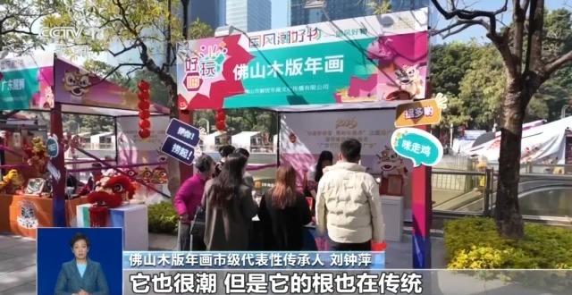 佛山木版年畫市級代表性傳承人 劉鐘萍:我們創(chuàng)作年畫的理念叫“潮得很傳統(tǒng)”,它也很潮,但是它的根也在傳統(tǒng)。在攤位可以看到非常受歡迎,我們都印不停。