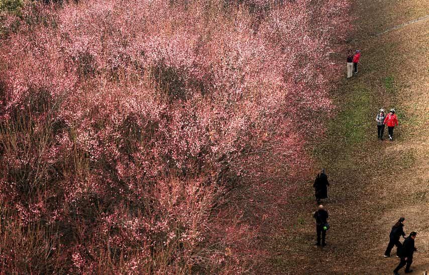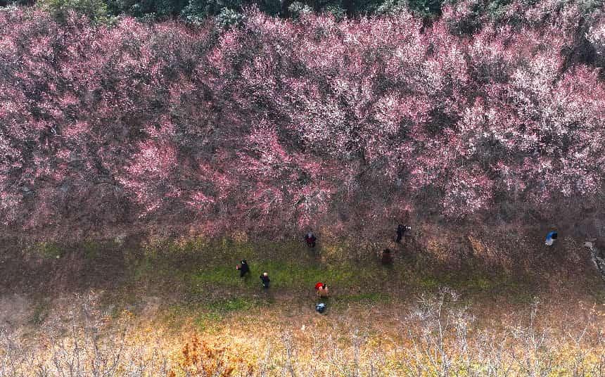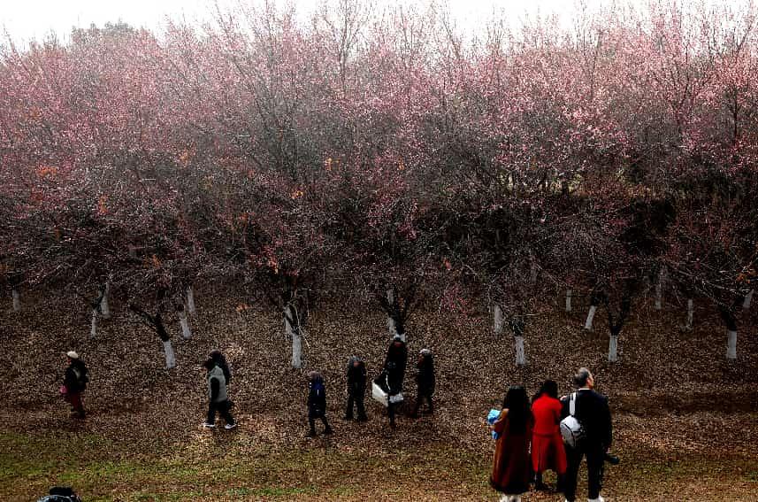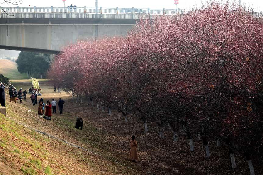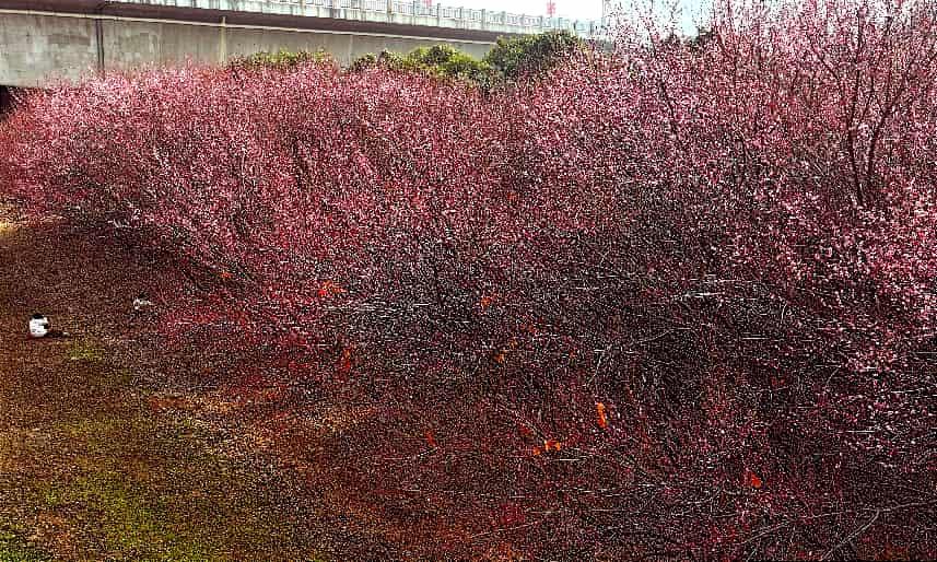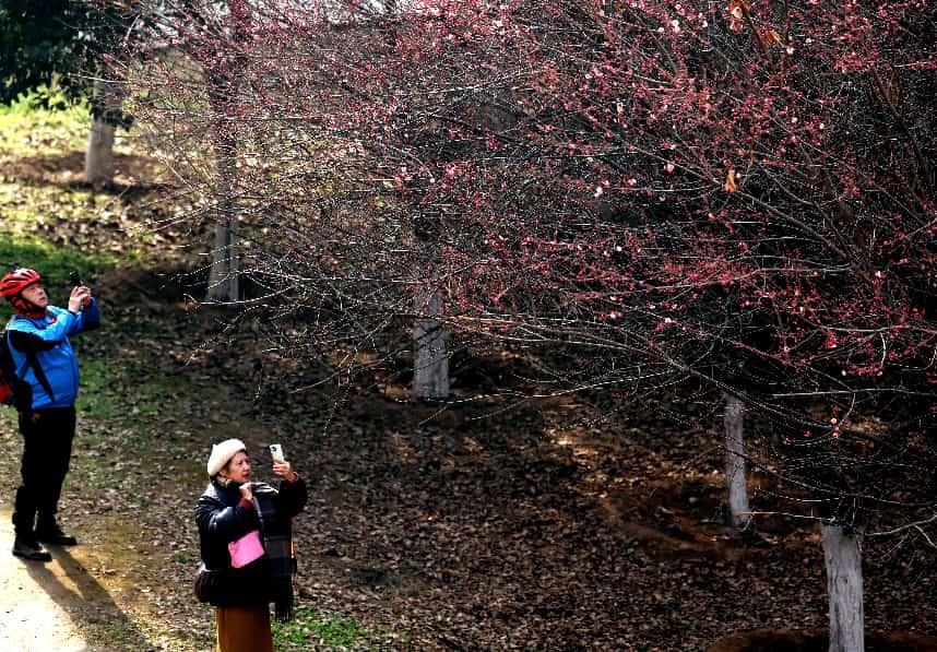 三秦都市報-三秦網訊(記者 代澤均)1月28日,在西安河堤路正陽大橋下,成片的梅花競相綻放,綴滿枝頭,吸引不少游人前往賞梅拍照打卡。