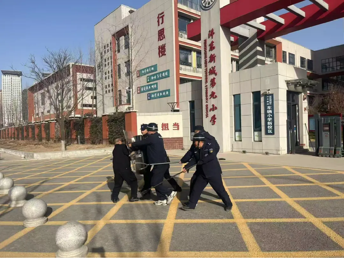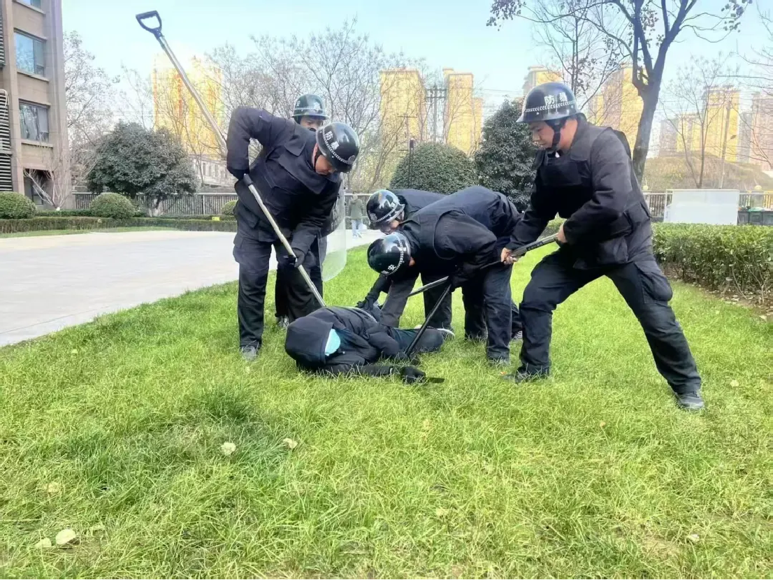 演練前,民警立足轄區實際,分別與小區物業、學校召開專項協調會,開展針對性風險評估,并結合轄區治安特點,圍繞突發警情處置流程、人員疏散引導技巧、安防器械規范使用等內容,為物業安保人員開展專題培訓。民警通過理論講解、動作示范、現場答疑等方式,詳細講解了面對可疑人員闖入、突發糾紛等常見場景的處置要點,強調了“快速反應、協同配合、科學處置”的工作原則,確保參訓人員掌握應急處置流程;向校園安保與教師團隊詳解防暴裝備使用、學生應急避險規范、“一鍵報警”聯動流程,確保每位成員明確職責分工、熟悉處置環節,為演練順利開展奠定堅實基礎。