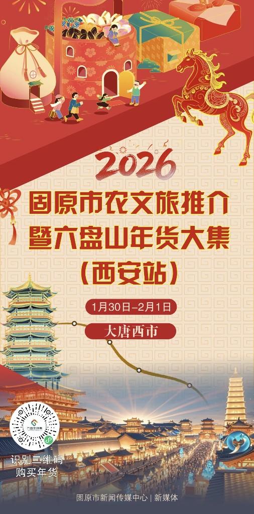 三秦都市報-三秦網訊(記者 吳昌永)“不只是年貨!固原這次去西安,還帶了 ‘四色’驚喜……”農歷馬年新春將至,1月30日至2月1日,“2026年固原市農文旅推介暨六盤山年貨大集(西安站)”活動將在西安市舉行。此次活動以“閩寧同行鏈通三秦共贏未來”為主題,將通過全方位展示寧夏固原特色農產品、文旅資源及產業優勢,為西安市民帶來一場別具特色的年貨采購與文化體驗盛宴活動。