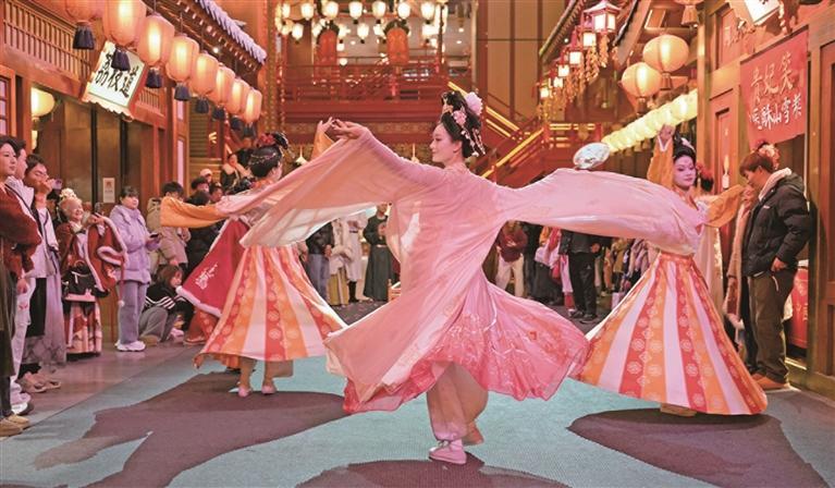 2025年12月23日,演員在街區內進行沉浸式表演。近期,經過煥新升級的西安長安十二時辰主題街區正式與游客見面。此次升級聚焦演藝、場景、互動等方面,進一步提升了街區的沉浸感、互動性與文化感染力,使游客在古城西安能夠更具象地感受大唐風貌、領略大唐繁華(資料照片)。 新華社記者 邵瑞攝
