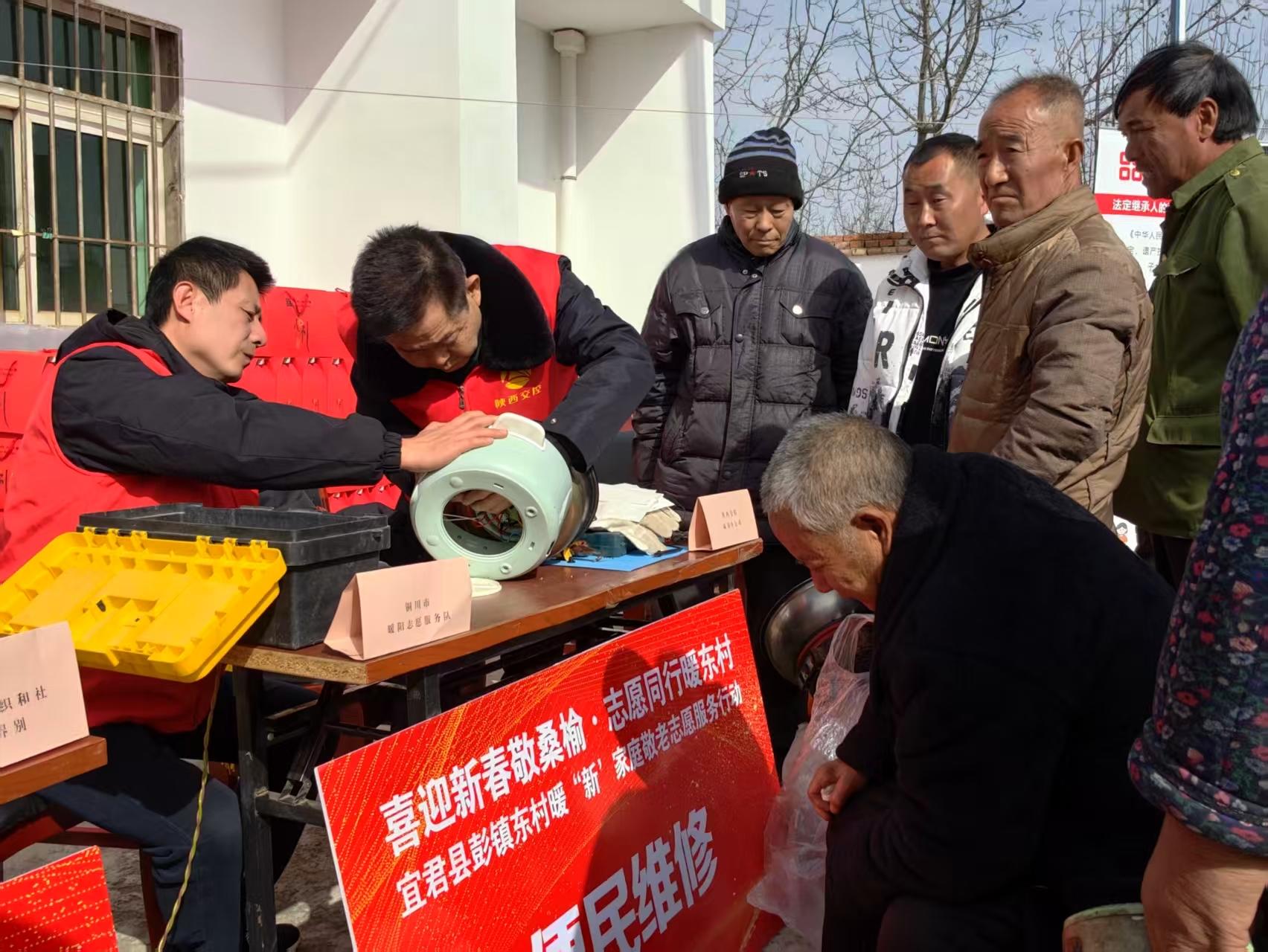 志愿服務項目四:便民維修,巧手解難題——陜西交控咸銅分公司、銅川市暖陽志愿服務隊的志愿者化身“維修能手”,為村民檢修小家電、小農具,做好生活“小修小補”;