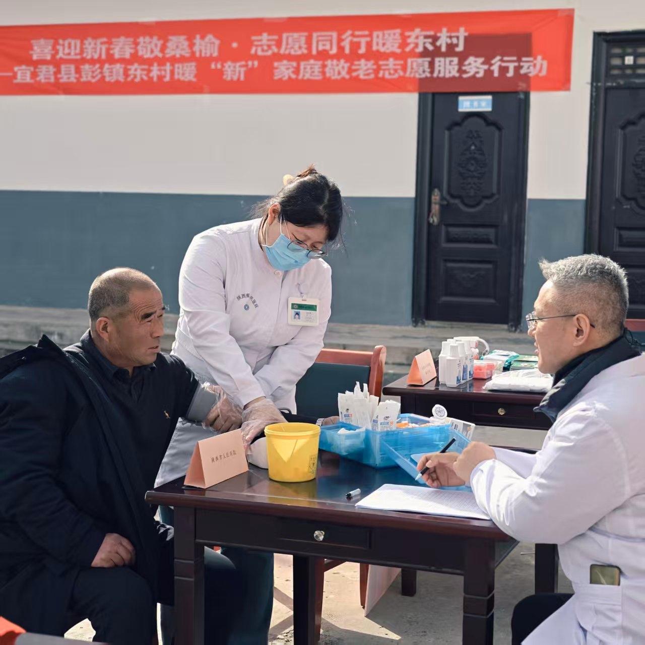 志愿服務項目三:健康義診,守護鄉村健康——陜西省人民醫院、袁林天口腔醫院航天分院的醫護志愿者為村民測量血壓、血糖,細致講解冬季養生與慢病防護知識,并提供專業口腔健康咨詢;