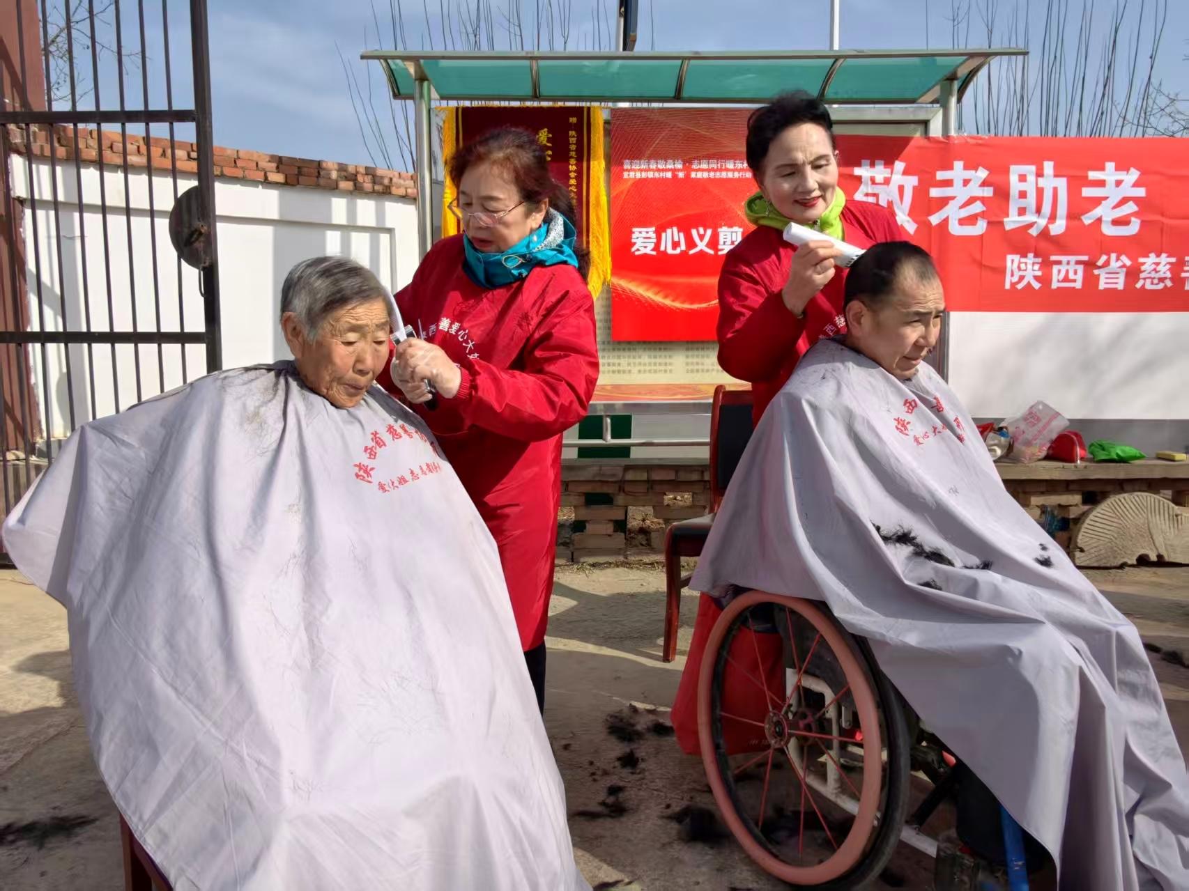 志愿服務項目二:愛心義剪,清爽迎新年——陜西省慈善協會愛心大姐志愿者團隊的專業理發師耐心為老人、村民免費理發,解決日常“理發難”問題;