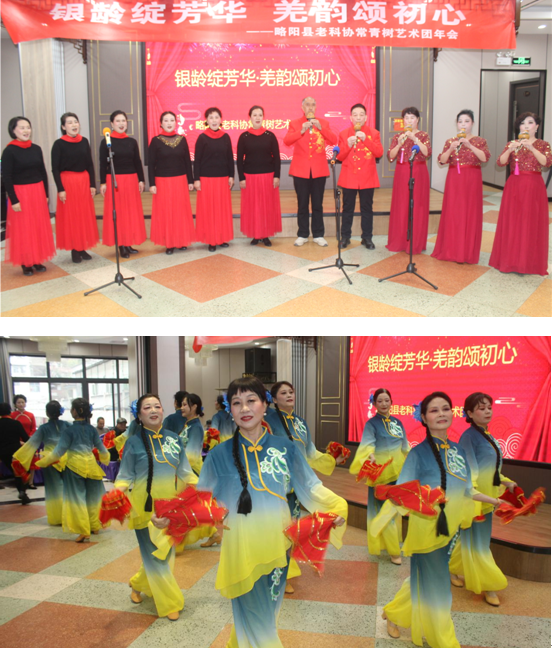 年會在縣老科協常青樹藝術團大合唱《我和我的祖國》、舞蹈《喜慶秧歌》、獨唱《少年壯志不言愁》、男女聲小合唱《我唱贊歌獻祖國》、葫蘆絲小合唱《映山紅》、紅歌聯唱等文藝節目表演中落下帷幕。整個年會洋溢著喜慶歡快祥和的氛圍,為縣老科協常青樹藝術團開啟馬年新征程激發出蓬勃活力。