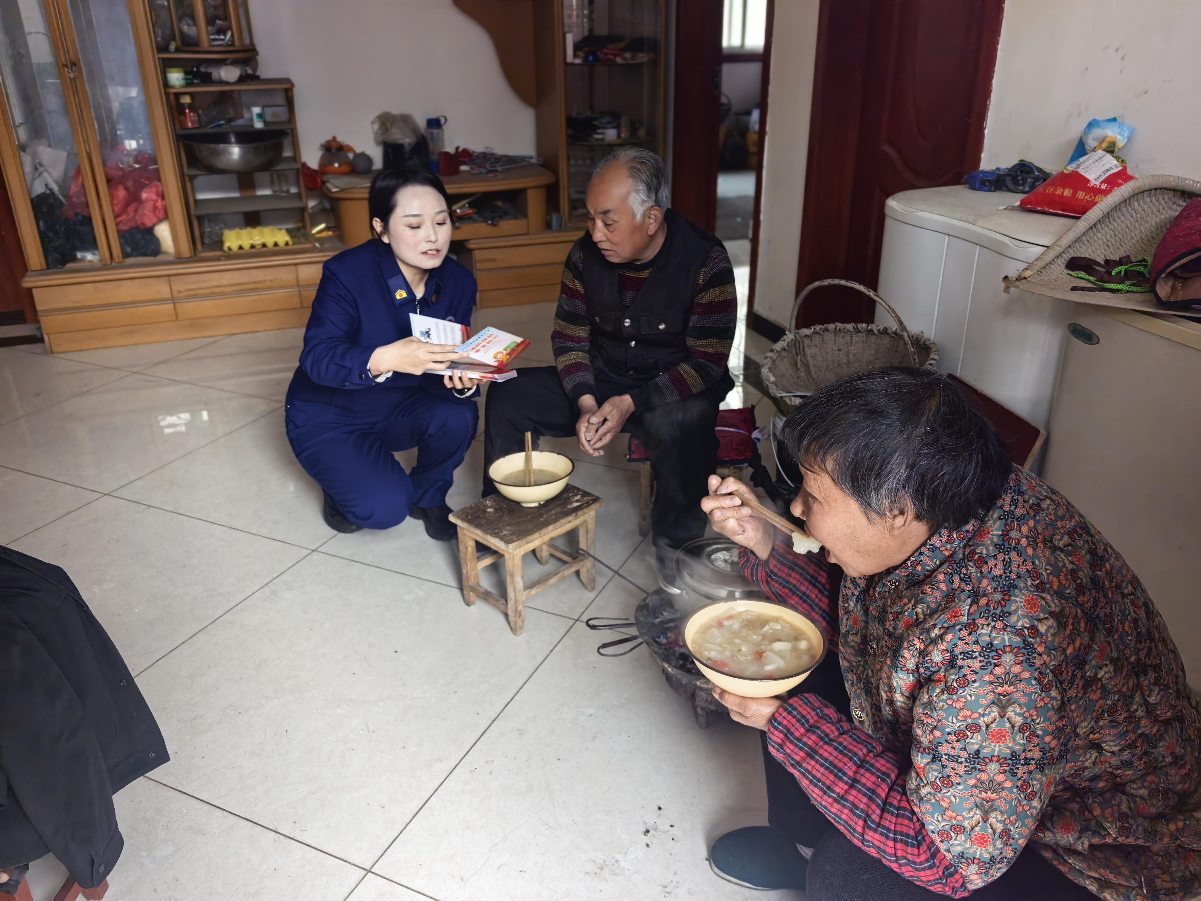 培訓后,大隊宣傳人員帶著宣傳資料和宣傳品,走進社區開展“敲門入戶”式宣傳。挨家挨戶張貼消防宣傳海報,發放圖文并茂的防火手冊,并送上印有消防提示語的布袋,讓消防知識融入居民日常生活。每到一戶,宣傳人員都耐心結合住戶實際,現場講解冬季取暖、臘肉熏制、廚房用火等安全要點。還現場演示了干粉滅火器的正確操作步驟,著重強調“提、拔、握、壓”四字使用要領。