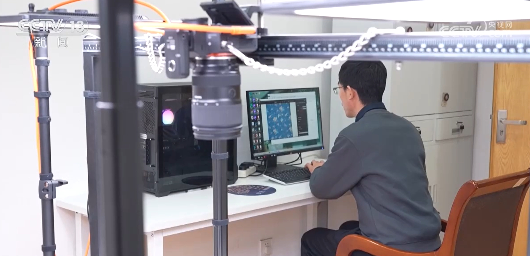 北京郵電大學人工智能學院教授 趙海英:我們把自主研發的一套高光譜的采集芯片和(智能布光)相機做了部分核心部件的一個替代,構建了在絲綢里面所用到的原真智能布光采集設備,可以看得更廣、采得更快。