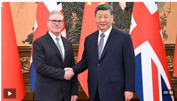 習近平指出,歡迎斯塔默首相先生訪華。你公開提出中國是機遇、同中國接觸是必選項,我對此表示贊賞。中方愿同英方發展長期穩定的全面戰略伙伴關系。中國農歷馬年春節即將到來。相信你這次訪問一定能取得成功,兩國合作也一定能一馬當先,為中英關系和兩國合作開新局。