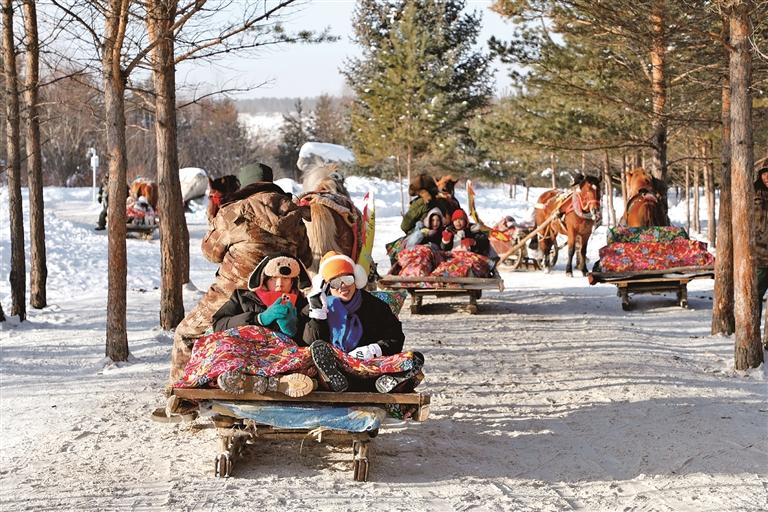 游客在漠河市北極村體驗馬拉爬犁。光明日報記者 劉宇航攝/光明圖片