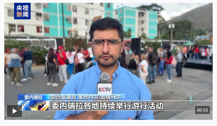 總臺報道員 萊昂內爾·雷塔馬爾:委內瑞拉各地持續舉行游行活動,在基層社區中,要求釋放總統馬杜羅、反對美國行徑的呼聲尤為強烈。