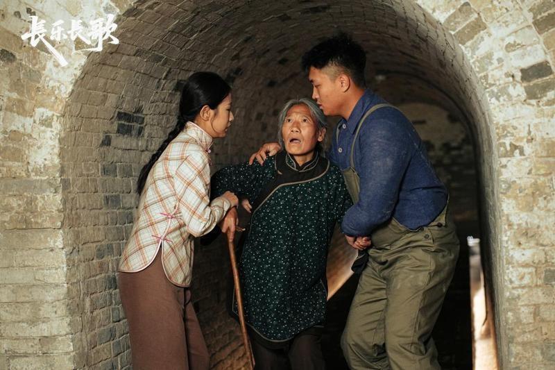 全劇故事始于戰(zhàn)火紛飛的火車站,留洋工程師顧長庚與話劇演員姜南因一箱前線急需的藥品而產(chǎn)生的命運(yùn)交織。但在主人公敘事之外,《長樂長歌》也構(gòu)建了一幅極具現(xiàn)實(shí)質(zhì)感的人物群像——從深明大義的姜老、在戰(zhàn)火中逐漸覺醒的鄉(xiāng)民瘋婆婆,到憨厚忠誠的鐵塔、命運(yùn)坎坷卻始終積極向上的白妮兒以及最終在忠義與親情間作出艱難抉擇的程炳坤……每個(gè)角色都在烽火中完成了各自的成長與蛻變,共同詮釋了“人心即生產(chǎn)力”的深刻主題,展現(xiàn)了陜地三千民眾如何用雙手與信念織就支援前線的生命線。