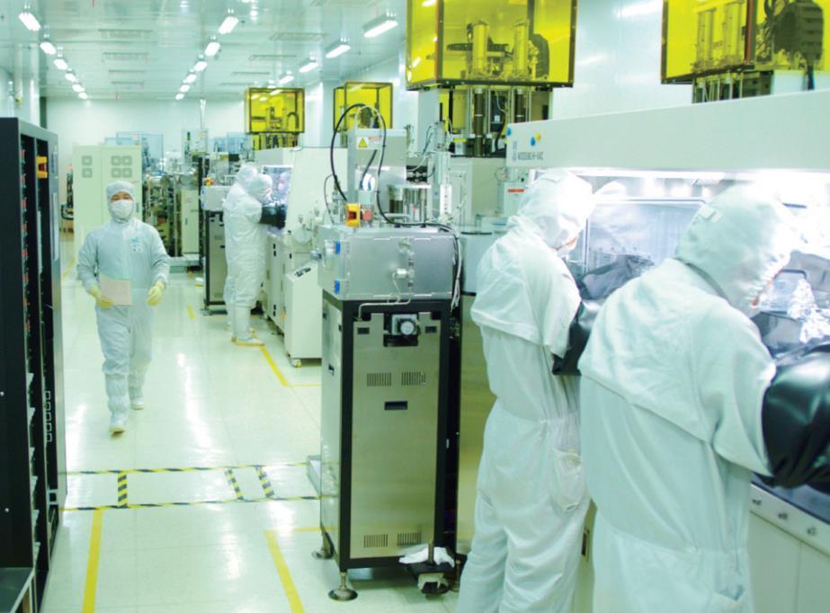 陜西萊特光電材料股份有限公司千級超凈無塵室內,工程師在操作蒸鍍機,進行OLED發光器件的制備和封裝。 受訪者供圖