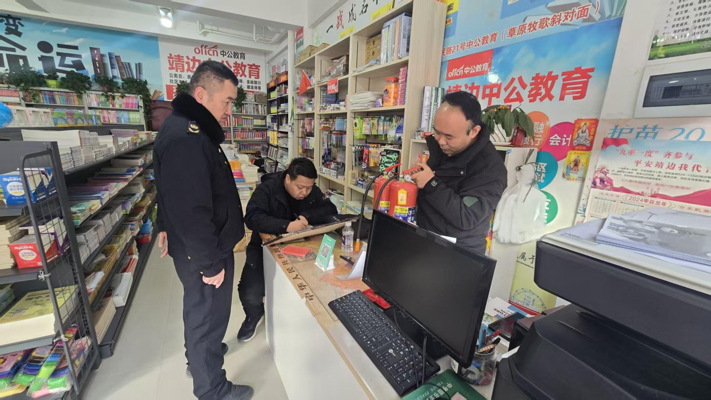 在凈化文化環境的同時,檢查組同步擰緊“安全閥”,對各經營場所的消防安全進行了“回頭看”。執法人員對消防設施是否完好有效、用電用火是否規范、安全通道是否暢通無阻等情況進行了逐項細致檢查,對發現的問題隱患現場督促整改,力爭將風險消除在萌芽狀態,杜絕安全生產事故。