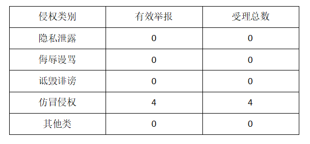 2026年1月,累計受理網絡侵權舉報4件,其中涉企舉報2件。