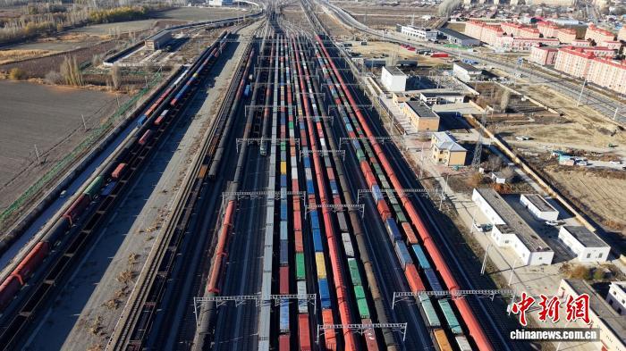 在新疆整裝待發(fā)的中歐(中亞)班列。(資料圖)胡嘉琛 攝