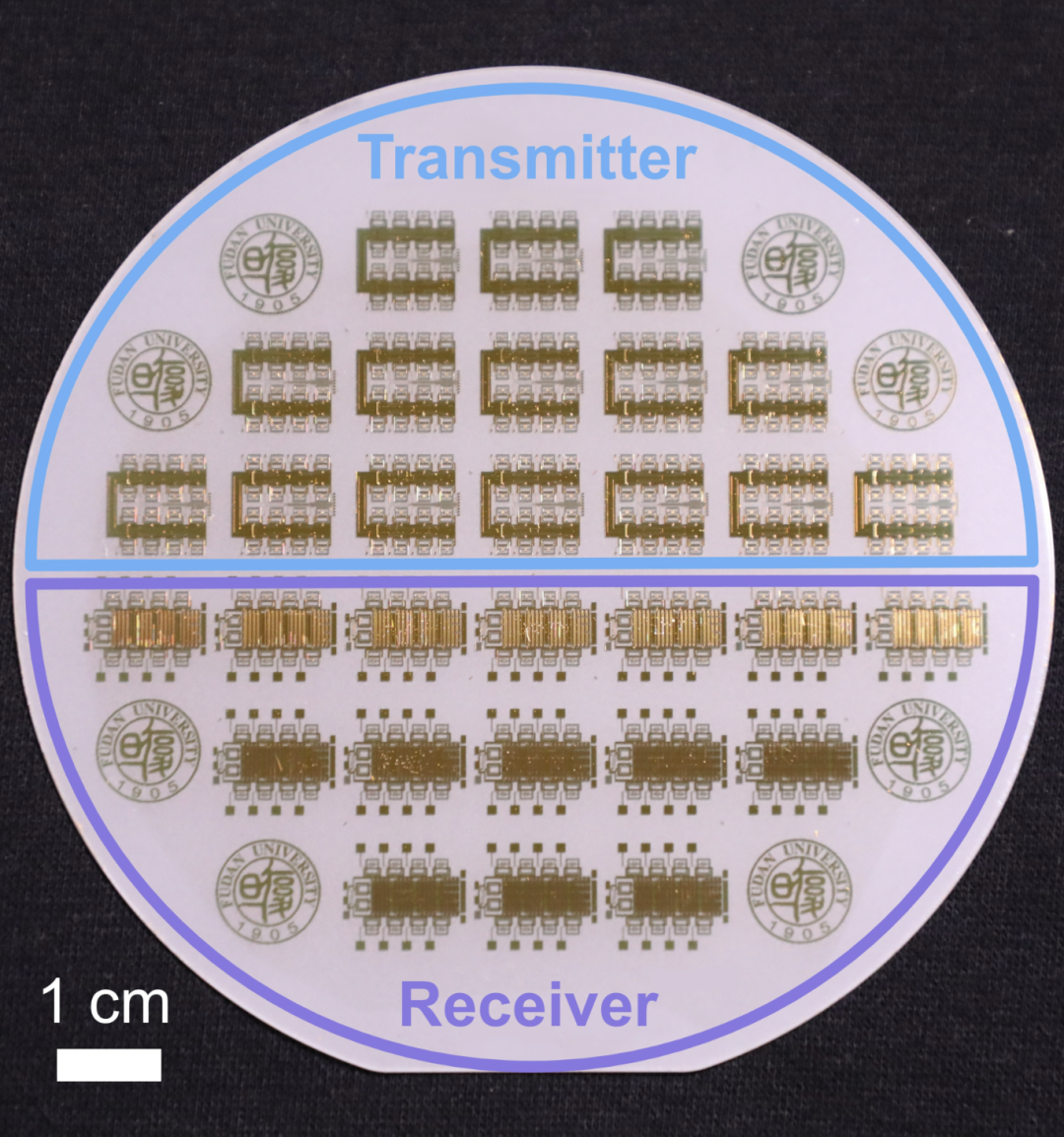 “青鳥”系統使用的4英寸原子層半導體抗輻射射頻通信芯片。圖片來源:復旦大學