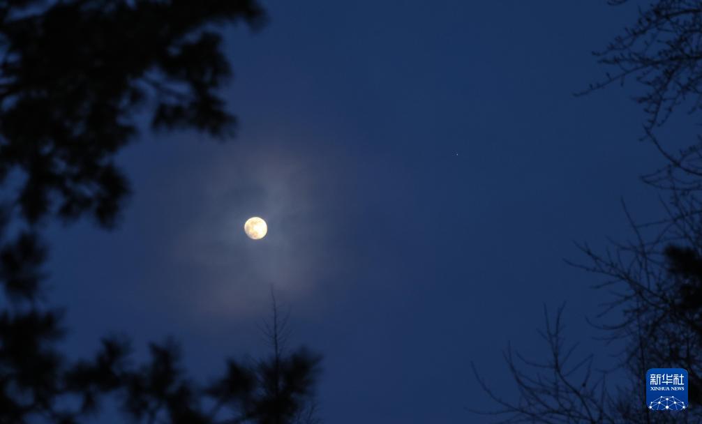 這是1月31日在黑龍江亞布力滑雪旅游度假區拍攝的木星伴凸月。
