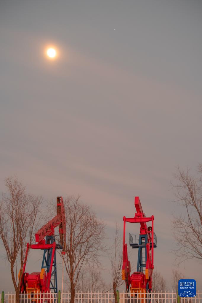 這是1月31日在黑龍江省大慶市拍攝的木星伴凸月。