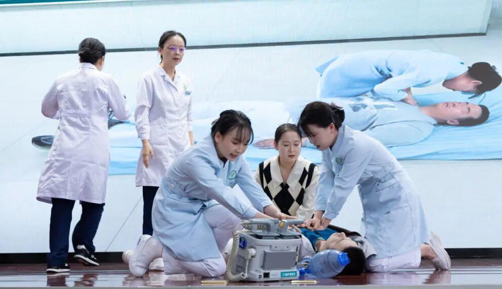與傳統(tǒng)競賽不同,本次大賽全程緊扣臨床真實救治場景,各參賽科室結(jié)合專業(yè)特色,精選老年髖部骨折術(shù)后肺栓塞、過敏性休克、腦出血、高血糖致呼吸心臟驟停、暴發(fā)性心肌炎ECMO支持等高發(fā)且處置難度大的病例搭建競賽場景,還原“與死神掰手腕”的緊急時刻。其中,急診科依托5G指揮中心提前統(tǒng)籌調(diào)配資源,實現(xiàn)“患者到院即搶救”的高效聯(lián)動;重癥醫(yī)學(xué)科直擊暴發(fā)性心肌炎ECMO支持高難度場景,展現(xiàn)前沿救治技術(shù)與團(tuán)隊協(xié)作實力;全科醫(yī)學(xué)科、神經(jīng)外科等科室則分別聚焦基層急診突發(fā)狀況、顱腦急癥等場景,演繹規(guī)范救治路徑。