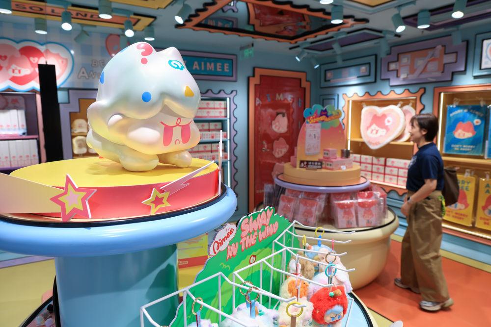 2025年10月28日,在廣州的名創優品MINISO LAND(城市樂園店),顧客選購原創IP潮玩產品。新華社記者 毛思倩 攝