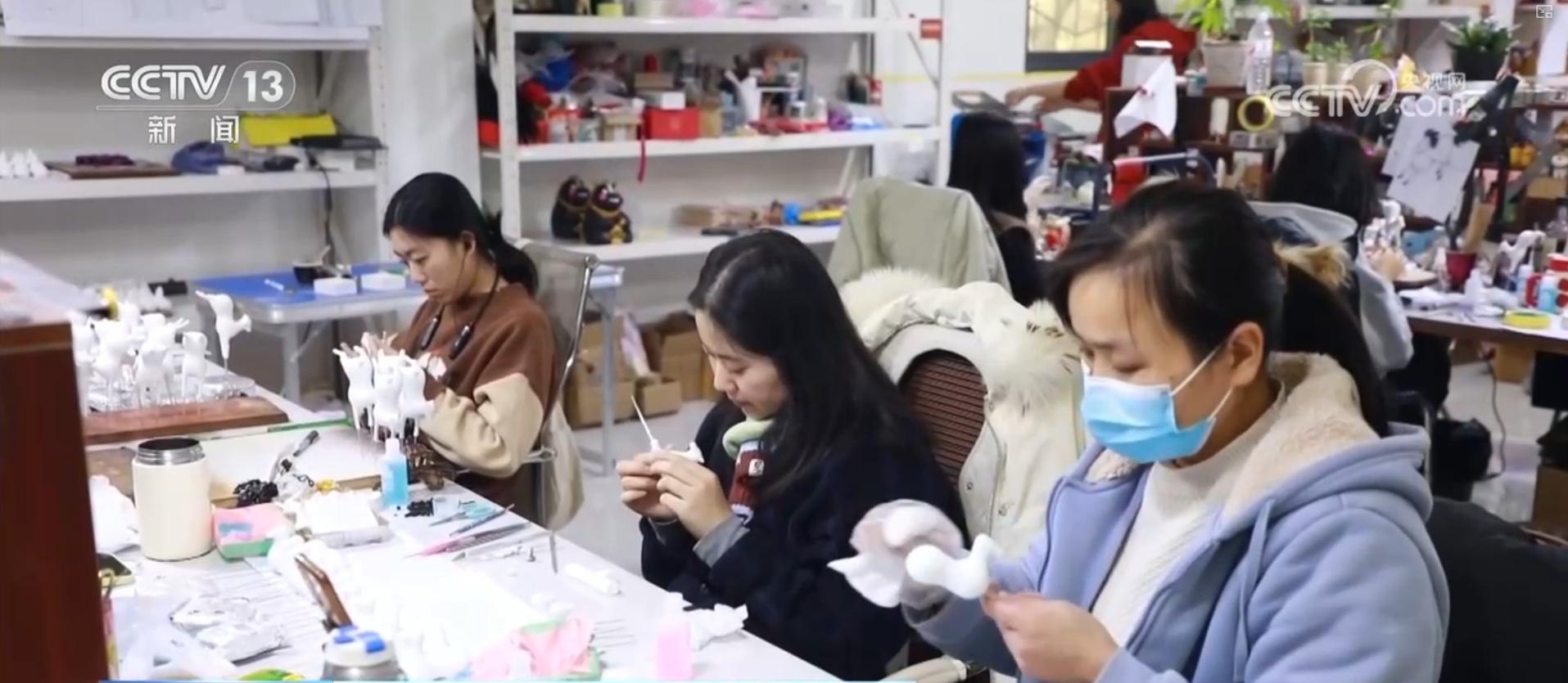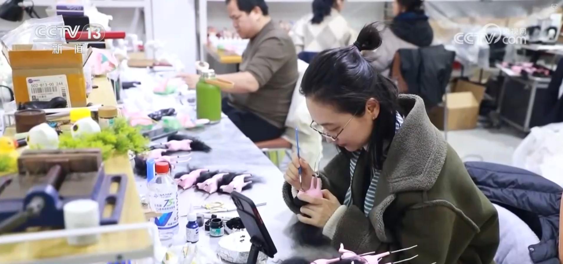 加上毛發,這一款精致的“潦草小馬”就終于完工了。在記者身旁是“馬彪彪”團隊的工作室。春節臨近,三十多位工作人員正在全力以赴地趕制訂單中。