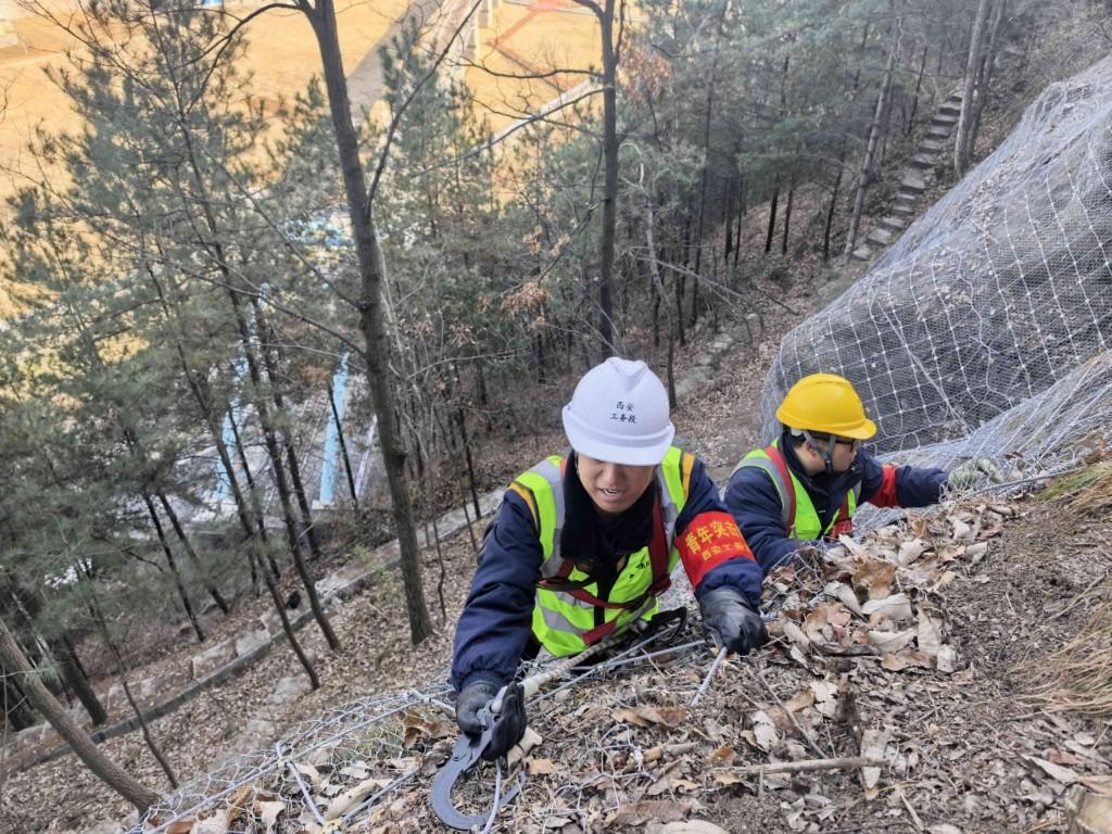 這座山頭共設置有主動防護網2處、被動防護網5處,總面積達1650平方米,需要檢查和整修的節點多達數千個,工作量很繁重。