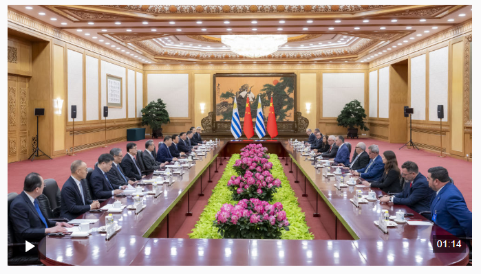 奧爾西說:“尊敬的習近平主席閣下,烏拉圭高度重視此次對華國事訪問,這也體現(xiàn)在我們派出了很高級別的代表團。今天恰逢兩國建交38周年,兩國的全面戰(zhàn)略伙伴關(guān)系正處于歷史最好時期。烏方有意進一步深化雙方在各領(lǐng)域的合作。”