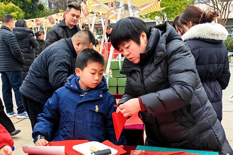 圖為孩子們在非遺項目——漢中民間木版圖畫拓印、南鄭剪紙體驗區學習剪紙技藝,深度感受非遺的鮮活生命力。