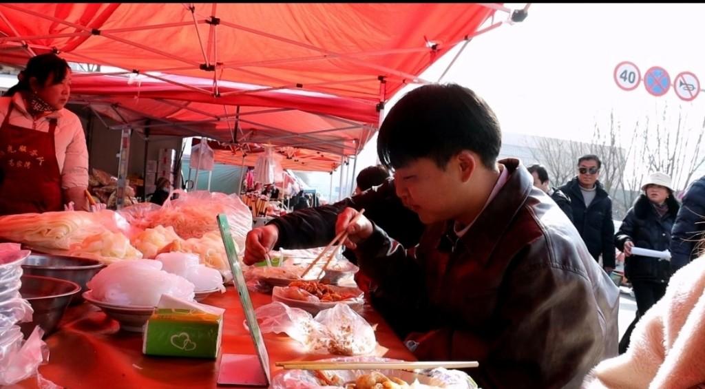 “兒童吃個葫蘆糖,半夜睡覺不尿床;學生吃個葫蘆糖,每次考試受表揚;姑娘吃個葫蘆糖,找個文武雙全少年郎……”一陣渾厚又押韻的叫賣聲,瞬間勾起許多人的童年記憶。這位賣糖葫蘆的大哥,已在集上吆喝了二十多年。他那段朗朗上口的順口溜,早已深深刻在了幾代人的兒時記憶里,成了年集上不可或缺的“背景音”。