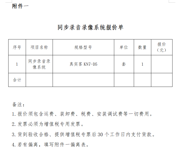 附件:22023年臨江公司同步錄音錄像系統采購項目(重新比價)附件