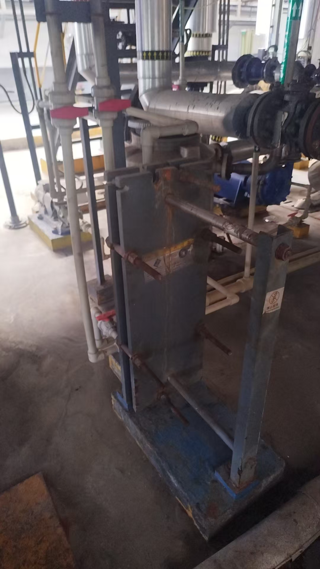 2.改造技術方案中:增加UPVC管道、DN80長度增加80米、增加DN65管道130米、DN40管道80米、DN50管道70米(管道均由采購人提供,供應商負責安裝);氟化物儲罐底部增加泵(離心泵型號:50FSB(L)-15-25/3kW-2 ,流量≥15m3/h,揚程≥25米,功率3kW-2 ,380V;增加一組波紋板式換熱器(蒸餾水冷卻器E104B/E204B,HX100A-1,材質:碳鋼,設計溫度:150℃,設計壓力:1.0MPa(G),換熱面積:10㎡,換熱板厚度:0.6mm,介質:循環水)。泵和換熱器由供應商提供并負責安裝。