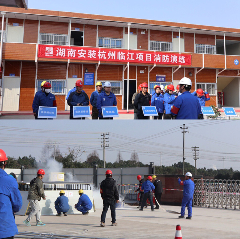 下午14點,演練活動按照經(jīng)批準(zhǔn)的演練方案正式開始?!盎馂?zāi)”發(fā)生后,演練負(fù)責(zé)人第一時間安排人員拉掉電閘,同時安排通訊組立即向監(jiān)理和建設(shè)單位匯報火情,然后帶領(lǐng)各應(yīng)急處置小組拉起警戒線,隔離可燃物資,疏散工人,搶救傷員,使用消防設(shè)施撲滅大火。此次演練從開始到結(jié)束都有條不紊進行,整個過程前后銜接連貫,未造成混亂場面,成功快速疏散現(xiàn)場的工人,及時撲滅大火,取得了預(yù)期效果。